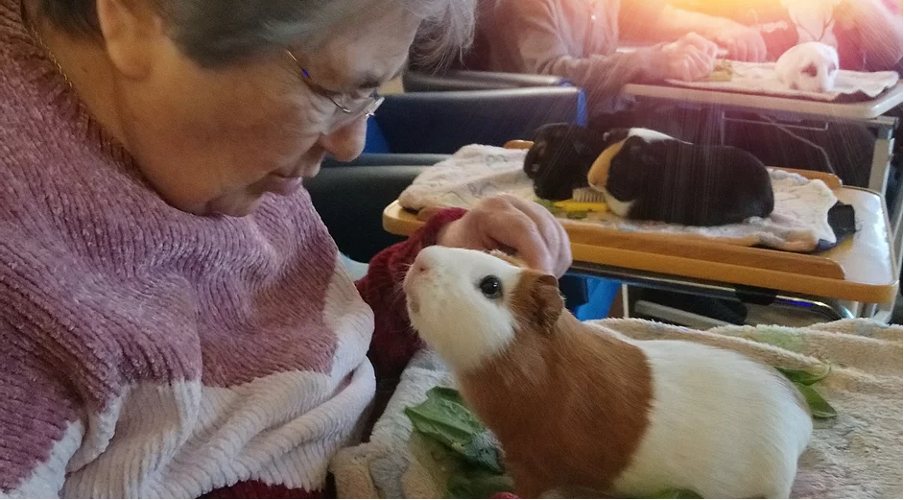 - Care home visits: Award winning specialists in therapeutic guinea-pig visits to all care settings, focusing on cognitive, sensory, fine motor skills & emotional engagement. Particularly in dementia, Alzheimer’s, brain injuries, stroke, autism & other disabilities